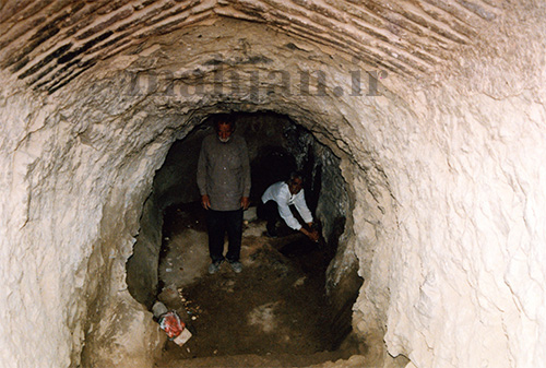 پاشیر آب انبار کلب خدیجه، این آب انبار تماما در سنگ بریده شده است.