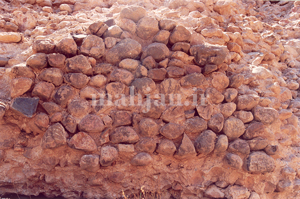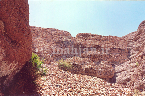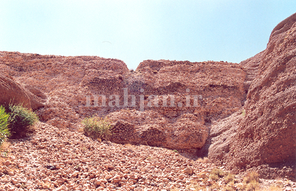 نماي بسته از سمت پاي آب ،مصالح به كار گرفته شده براي ساخت بند لاشه سنگ و ساروج است