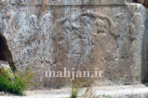 این حجاری فرسایش بسیار یافته است. تنها راه دستیابی به این نقش¬، پلکان کوچکی است که از قله کوه سرازیر می¬شود . این محل چنانچه از نقوش کنده کاری شده روی سنگ¬ها برمی¬آید محل عبادت بوده است.