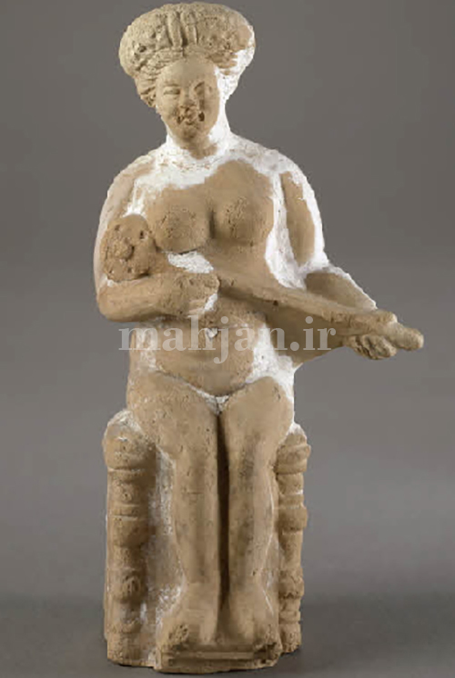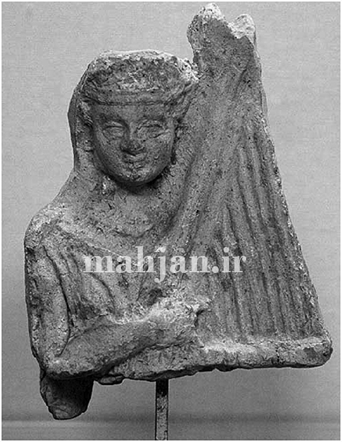 تندیس بانوی چنگ نواز، کشف شده در شوش متعلق به دوران پارتی، محل نگهداری موزه لوور پاریس