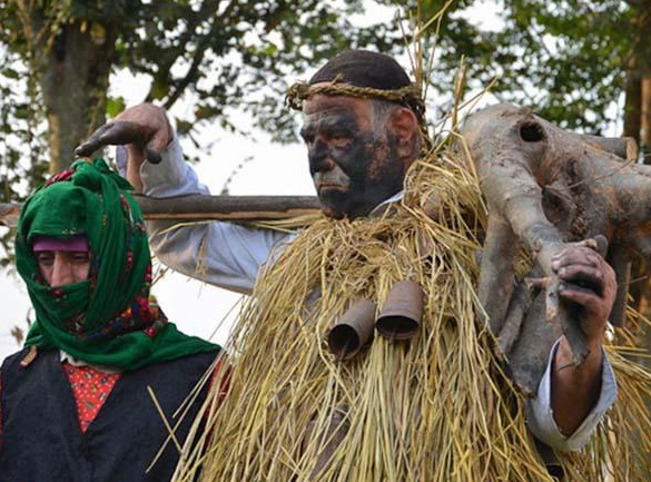 در اجرای مراسم عروس گولی در گیلان، پیرغول چهره­ی خودرا سیاه می­کند